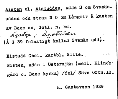 Information om ortnamnet Aisten el. Aistudden