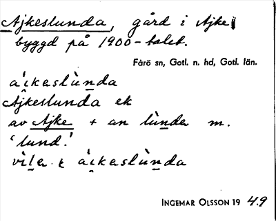 Information om ortnamnet Ajkeslunda