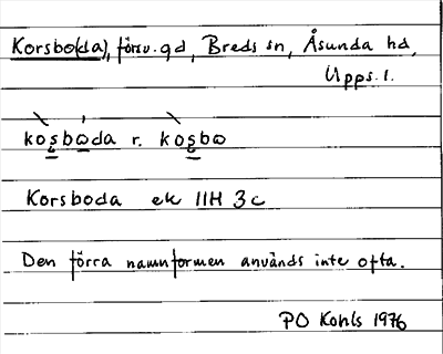 Information om ortnamnet Korsboda