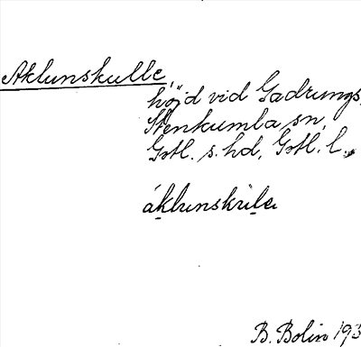 Information om ortnamnet Aklunskulle