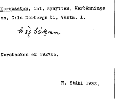 Information om ortnamnet Korsbacken