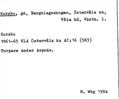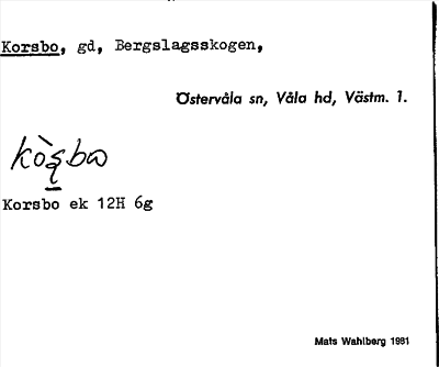Information om arkivposten Korsbo