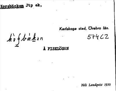 Information om ortnamnet Korsbäcken