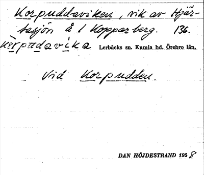 Information om ortnamnet Korpuddaviken