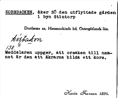 Information om ortnamnet Korsbacken