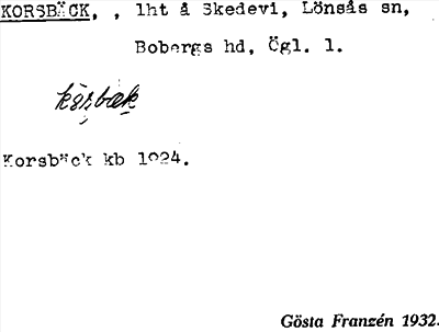 Information om arkivposten Korsbäck