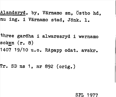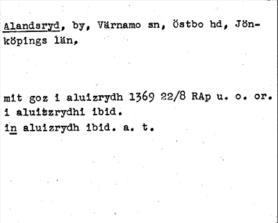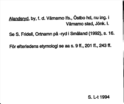 Information om ortnamnet Alandsryd