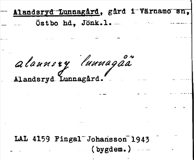 Information om ortnamnet Alandsryd Lunnagård