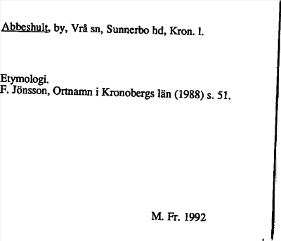 Information om ortnamnet Abbeshult