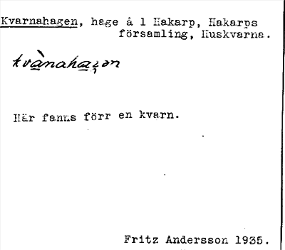 Information om arkivposten Kvarnahagen