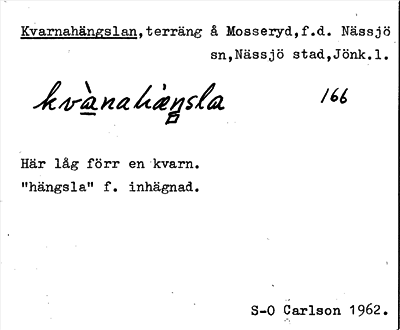 Information om ortnamnet Kvarnahängslan