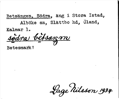 Information om ortnamnet Betsängen, Södra
