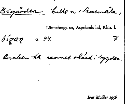 Information om ortnamnet Bigården