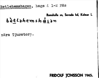 Information om arkivposten Betlehemshagen
