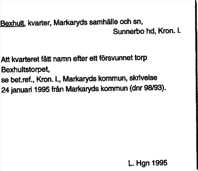 Information om ortnamnet Bexhult