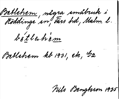 Information om arkivposten Betlehem