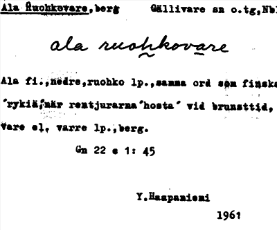 Information om ortnamnet Ala Ruohkovare