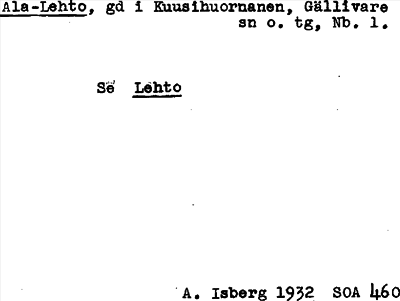 Bild på arkivkortet för arkivposten Ala-Lehto