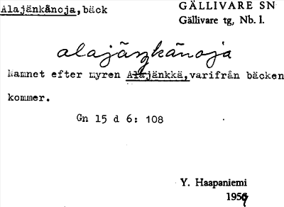 Information om ortnamnet Alajänkänoja