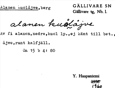 Information om ortnamnet Alanen Kuolåjve
