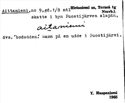 Hietaniemi sn, Torneå tg, Norrbottens län, Norrbotten