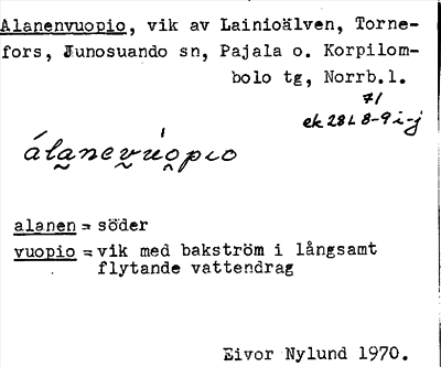 Information om ortnamnet Alanenvuopio