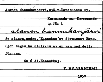 Information om ortnamnet Alanen Hannukanjärvi