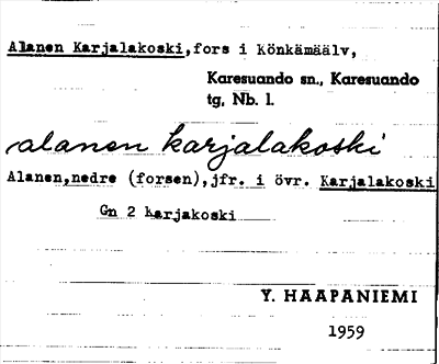 Information om ortnamnet Alanen Karjalakoski