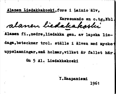 Information om ortnamnet Alanen Liedakkakoski