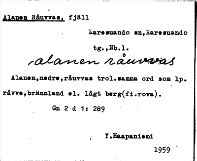 Information om ortnamnet Alanen Råuvvas