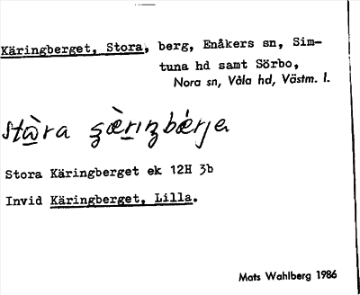 Information om ortnamnet Käringberget, Stora