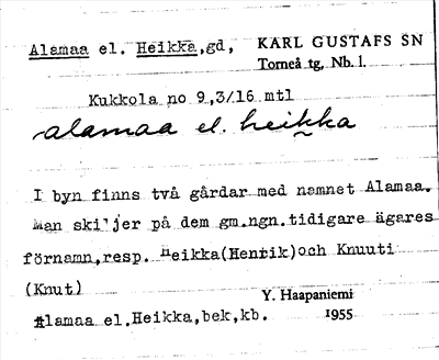 Information om ortnamnet Alamaa el. Heikka