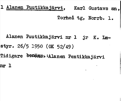 Information om ortnamnet Alanen Puutikkajärvi