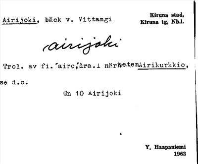 Information om ortnamnet Airijoki