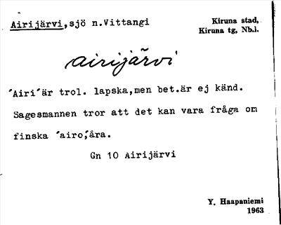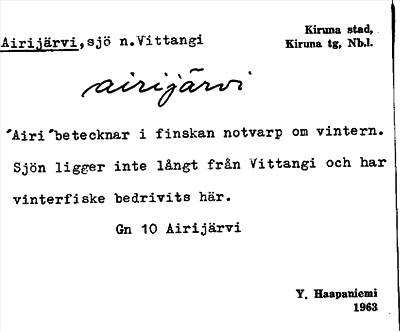 Information om ortnamnet Airijärvi