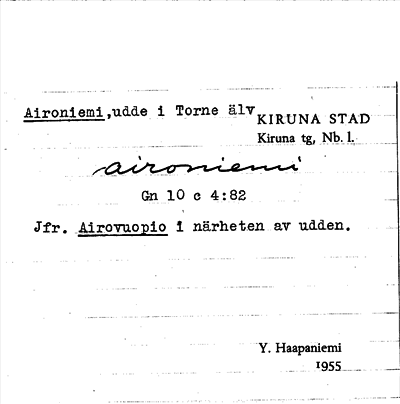 Information om ortnamnet Aironiemi