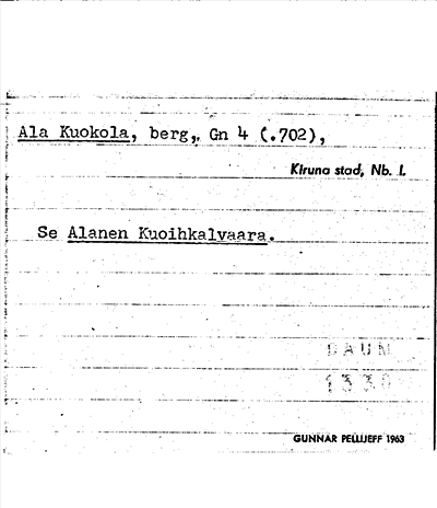 Information om Ala Kuokola, se Alanen Kuoihkalvaara