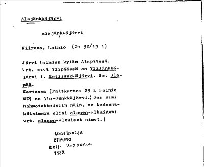 Information om ortnamnet Alajänkkäjärvi