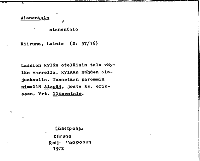 Information om ortnamnet Alanentalo