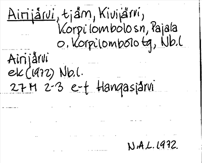 Information om ortnamnet Airijärvi