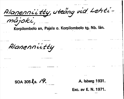 Information om ortnamnet Alanenniitty