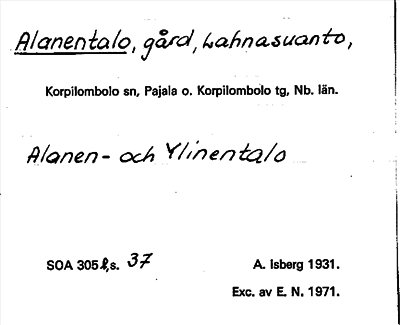 Information om ortnamnet Alanentalo