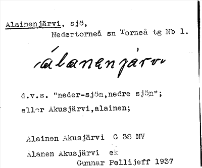 Information om ortnamnet Alainenjärvi