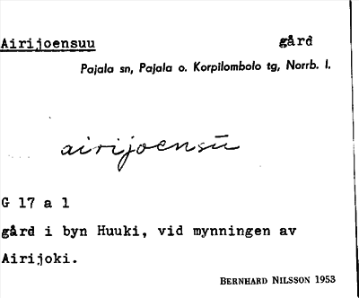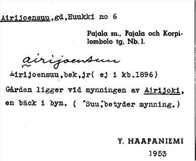 Information om ortnamnet Airijoensuu