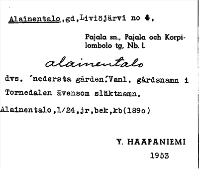 Information om ortnamnet Alainentalo