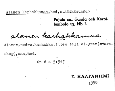 Information om ortnamnet Alanen Karhakkamaa
