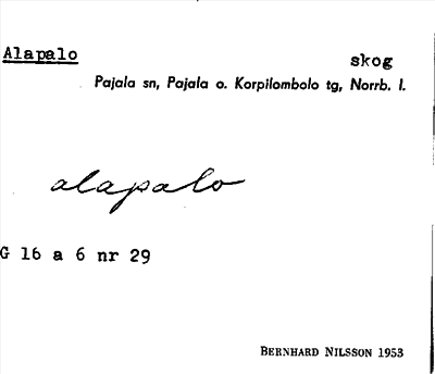 Information om ortnamnet Alapalo