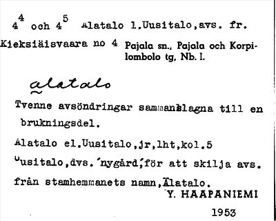 Information om Alatalo, Uusitalo