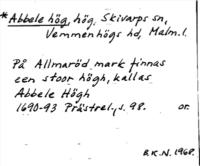 Information om ortnamnet Abbele hög