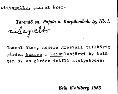 Information om ortnamnet Aittapelto